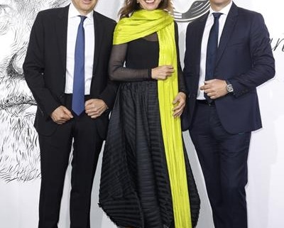 HAMBURG, GERMANY – MAY 10: Enrique Sobejano, Fuensanta Nieto and Nicolas Baretzki during the Montblanc House opening on May 10, 2022 in Hamburg, Germany. (Photo by Franziska Krug/Getty Images for Montblanc International)